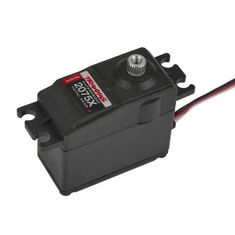The Traxxas 2075X waterproof digital high torque, metal gear Servo features ball bearings for smooth reliable steering and metal gears for extra strength. Use Traxxas stock and hop-up replacement parts to get the most out of your Traxxas RTR vehicles. This product is made from high quality materials and designed for long-lasting performance. This is replacement hardware for use on Traxxas vehicles; consult your user’s manual for exact parts listings.