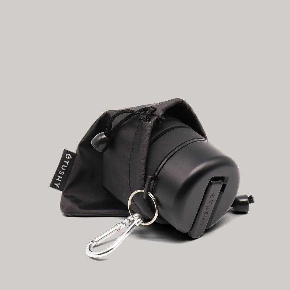 Collapsible bottle with TURD-gonomic grip and squeeze. Hinged nozzle with 3-point spout for a 5-star clean. Discreet carrying case. Carabiner to hook onto your bag. Strong stream and spray pattern for optimal booty cleaning magic. Can hold up to 11 fl oz of water. Weighs 5.3 oz when empty.
