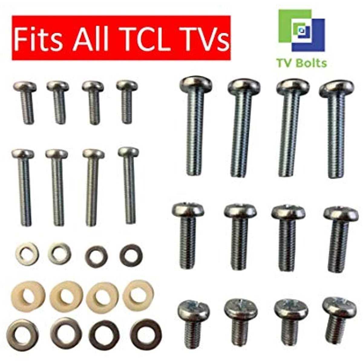 Set of screws/ bolts and washers to wall mount any TCL flatscreen TV Zinc plated steel and coated with electrostatic discharge preventive Meets ASTM, ISO, ANSI and DIN specs. Includes multiple size lengths, washers and spacers Already have the wall mount but no screws for the back of your TV? Don’t know what size you need?