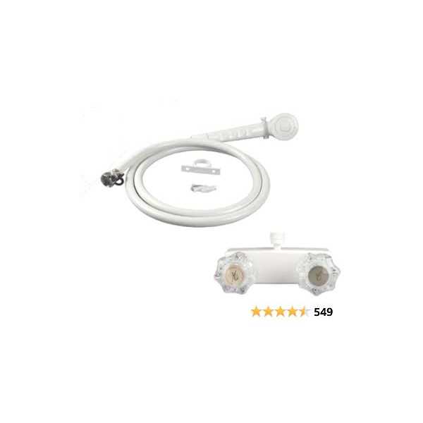 Bathtub & Shower Trim Systems by Wholesale Plumbing Supply. Details:The White RV / Mobile Home Shower Faucet with hand-held shower is a great addition to any RV or camper. Hand held shower comes with a 60 in. vinyl hose and has a water saving trickle switch. The shower faucet is nonmetallic so it won’t rust and is lightweight so you won’t be adding extra weight to your RV.