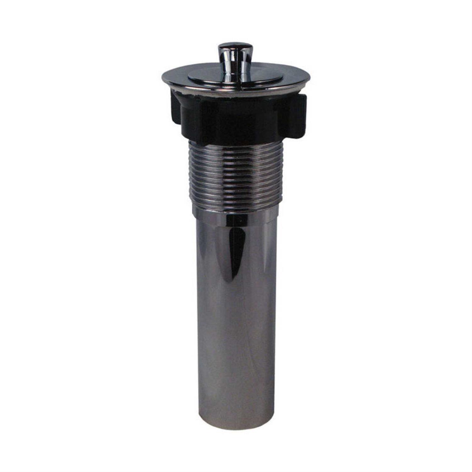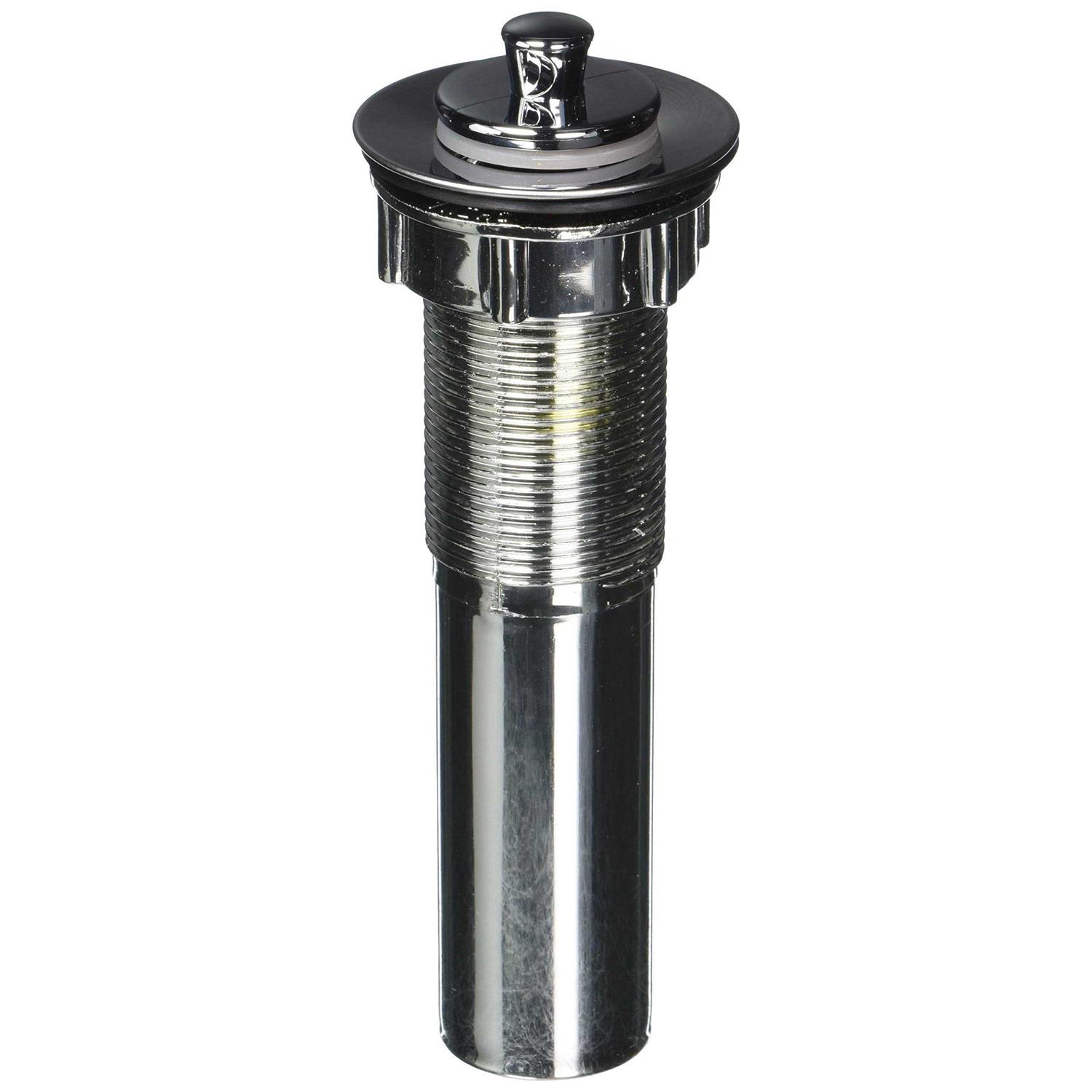 The American Hardware P-102C Vanity Sink Drain is made of plastic and has a tail length of 5-1/2 inches. This 1-1/4-inch bright chrome drain sports a popup stopper and weighs 0.155 lb.