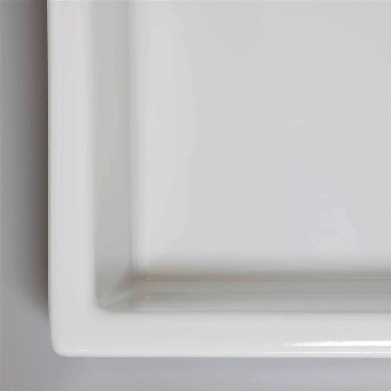 Sits on the counter top. – Faucet sold separately.. The Overall Height of a sink is the external measurement from top to bottom, while the Overall Depth is the interior measure of how much water the sink can hold.. The Overall Length of a sink is measured in” from left to right and the Overall Width is measured from front to back.. Remember that a vessel sink adds height to your vanity, so make sure that your vanity is short enough that when the sink is installed, the total height of the vanity and sink is 30-36″.. Installation Type: Vessel Sinks. – Style (Old): Traditional. – Sink Shape: Rectangular. – Finish: White. – Material: Vitreous China. – Number of Faucet Holes: 1. Overflow: Yes. – Overall Length – Side to Side: 7″. Overall Width – Front to Back: 23.63″. Overall Height – Top to Bottom: 18.5″. Basin Depth – Top to Bottom: 6.5″. Overall Product Weight: 39.46 lbs. – Overall Product Weight: 39.46 lbs