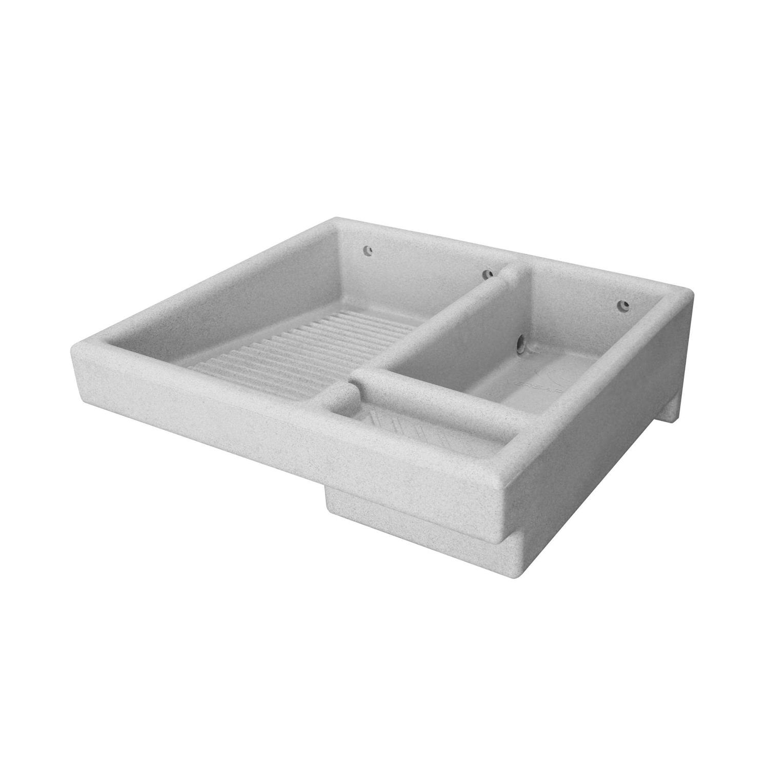 Durable Plastic Construction: Made from durable plastic material for long-lasting use. Modern Style: Sleek modern design complements any kitchen decor. Portable Size: Compact size is easy to store and move around. Single Compartment: Features one large compartment for washing fruits and vegetables. Floor Mounted: Easily mounts to any kitchen countertop or floor. The Versaplas Washboard is easy to install. Its weight is 12 pounds. It can be installed outdoor. Main Color: Grey.