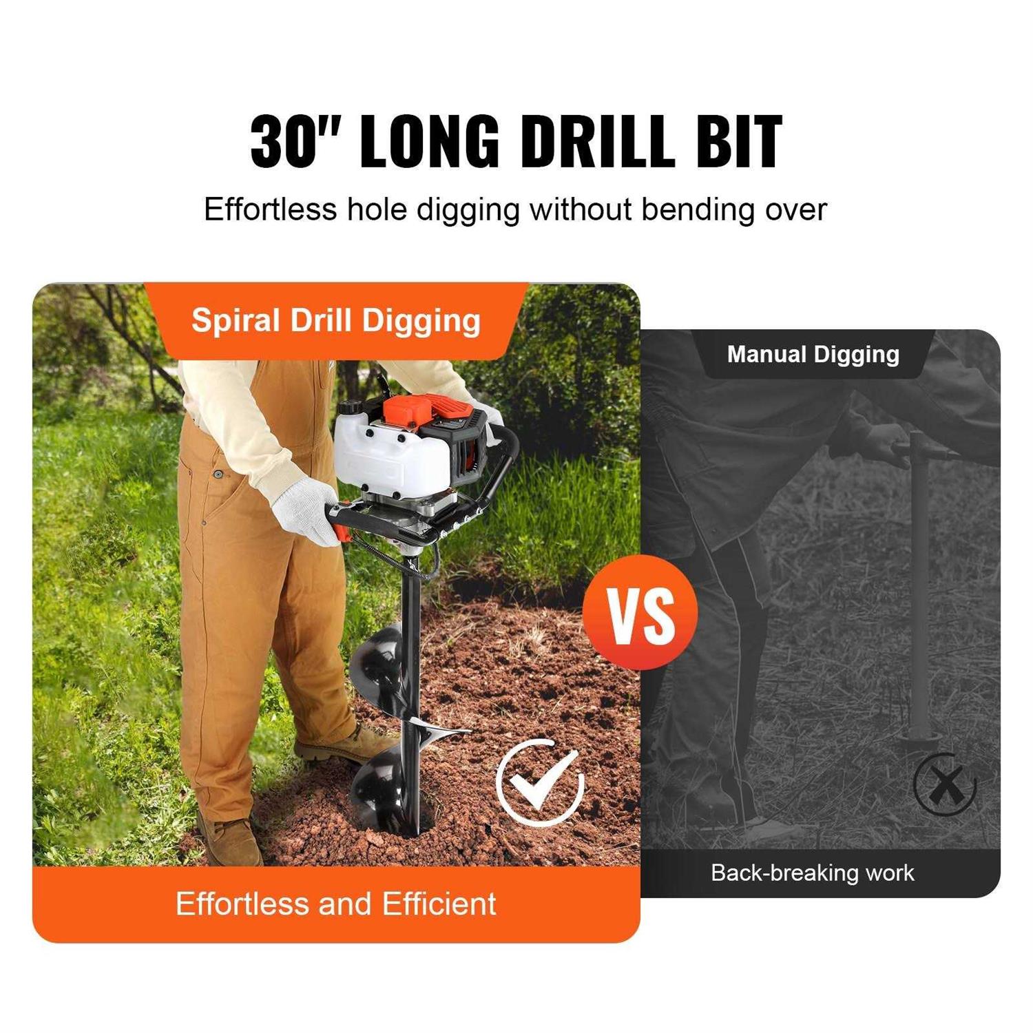 VEVOR Post Hole Digger Auger Post Hole Digger Gas Powered Earth Digger Earth Auger Drill Bit