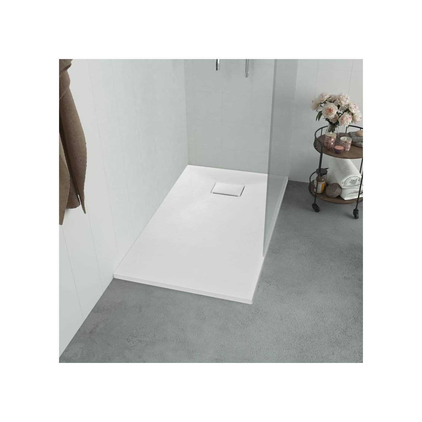 Shower Base Tray SMC White 100×70 cmvidaXL Featuring a modern, low-profile, as well as a clean look, this shower tray will add a great addition to your bathroom! The bathroom base is characterized by a low threshold for easy entry and exit. The hard-wearing SMC shower base is also reinforced for durability. Thanks to the slate stone surface design, the shower receptor is skid resistant. Additionally, our scratch- and stain- resistant SMC shower tray will withstand years of use. The bathroom tray is easy to clean.