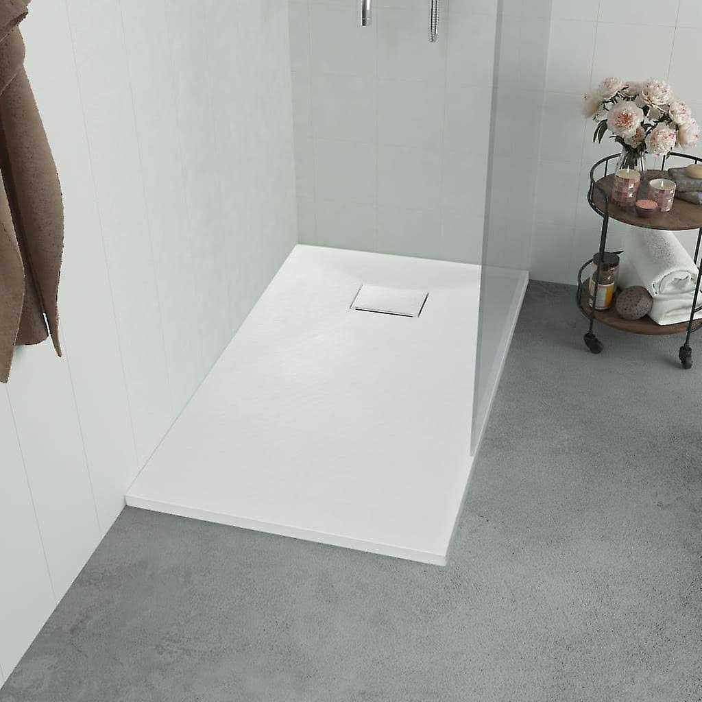 Shower Base Tray SMC White 120×70 cm vidaXL Featuring a modern, low-profile, as well as a clean look, this shower tray will add a great addition to your bathroom! The bathroom base is characterized by a low threshold for easy entry and exit. The hard-wearing SMC shower base is also reinforced for durability. Thanks to the slate stone surface design, the shower receptor is skid resistant. Additionally, our scratch- and stain- resistant SMC shower tray will withstand years of use. The bathroom tray is easy to clean.