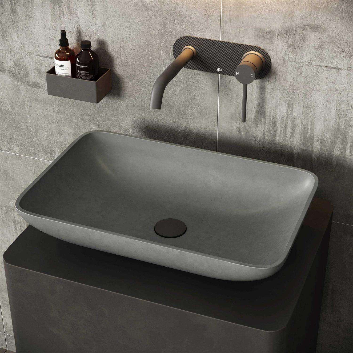 VIGO Concreto Stone VG04060 23 in. Rectangular Bathroom Vessel Sink in Gray