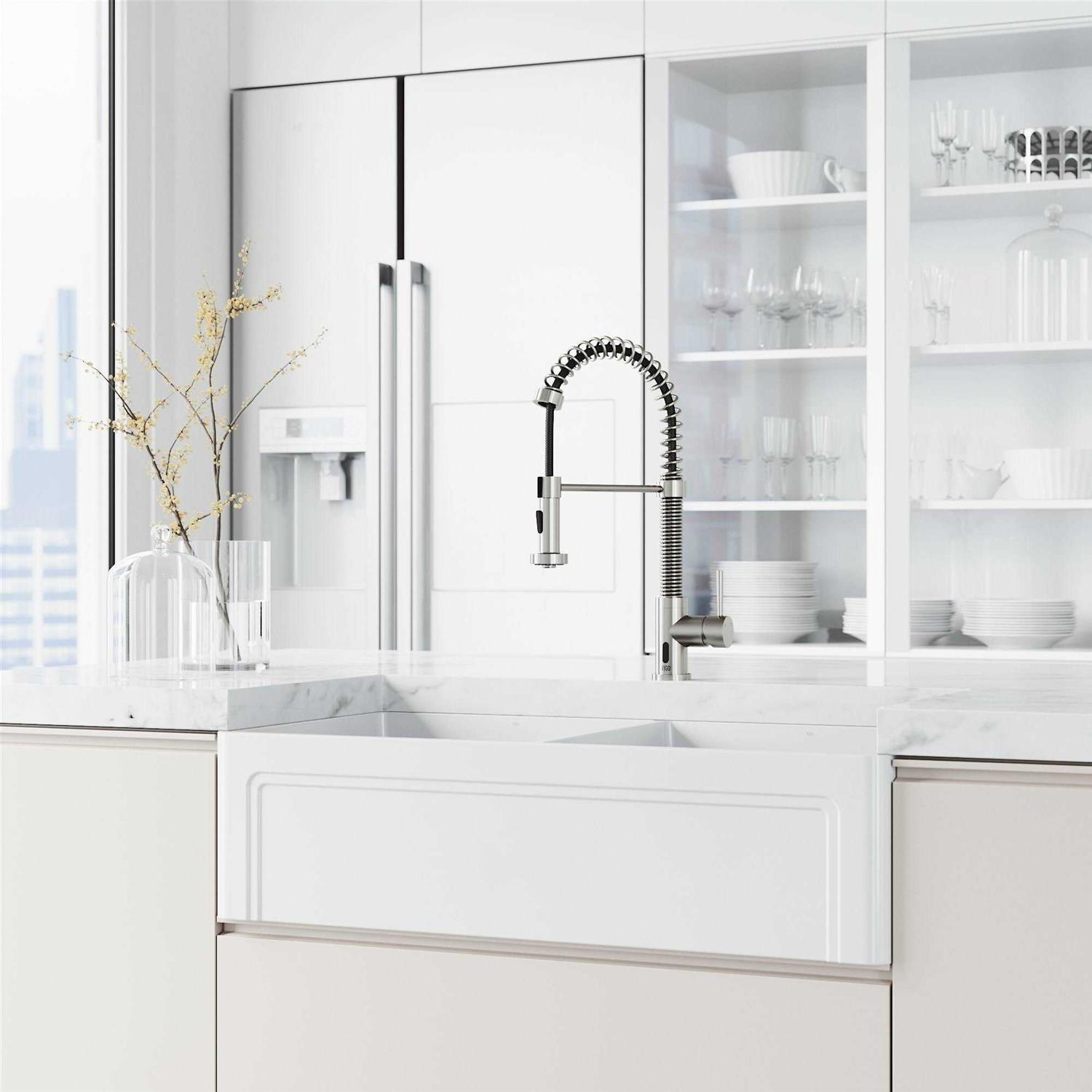 VIGO presents The Edison pull-down kitchen faucet, now available with touchless operation. The Edison by VIGO is a powerful yet beautiful kitchen faucet with a spray head that provides impressive performance with the touchless flow sensor for a more convenient and hygienic experience. The Edison is designed with a sleek high arc coil to protect the pull-down hose. VIGO’s premium matte black hardware finish lasts a lifetime, and that installation is effortless.