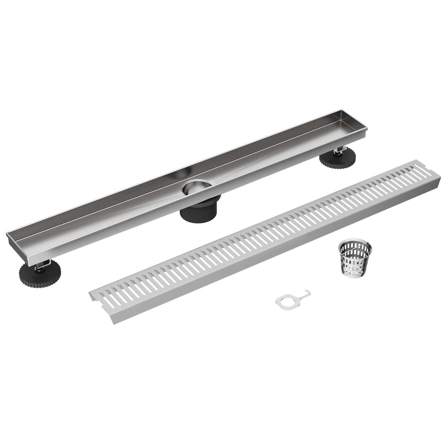 Enhance your shower experience with a linear shower drain by VIGO. Its attractive, sloped channel enables seamless and complete water drainage, while the rectangular drain grate prevents clogging. Its premium hardware finish allows easy cleaning and ensures long-lasting durability. Upgrade your bathroom shower experience with this rectangle shower drain from VIGO.