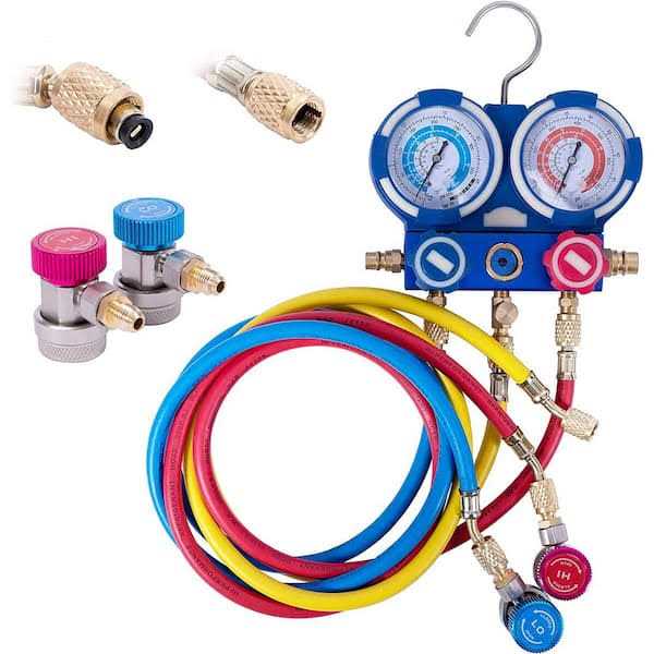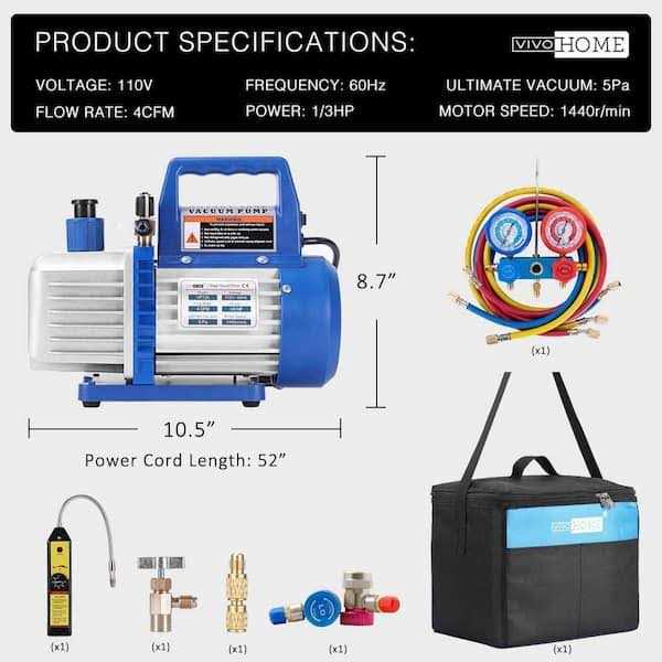 The single-stage air vacuum pump and R134a AC manifold gauge set is designed for HVAC refrigeration recharging in daily life. The kit package design eliminates the trouble of looking for a suitable air pump and refrigerant pressure gauge separately. VIVOHOME rotary vane air vacuum pump has high efficiency, low noise output, and a wide range of applications, suitable for household air conditioning, automobile maintenance, refrigerator vacuum, industry, etc.