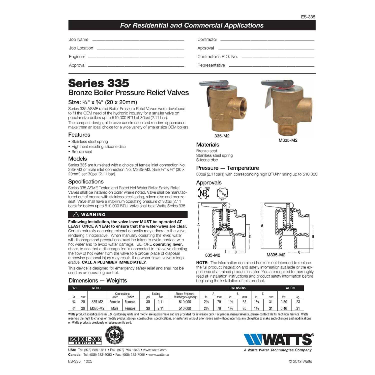 Watts 0342692 Relief Valve