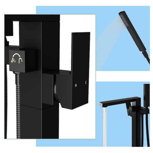 WIAWG Single-Handle Freestanding Bathtub Faucet, Floor Mounted Tub Filler with Hand Shower in Black, High Flow Rate Max 6 GPM