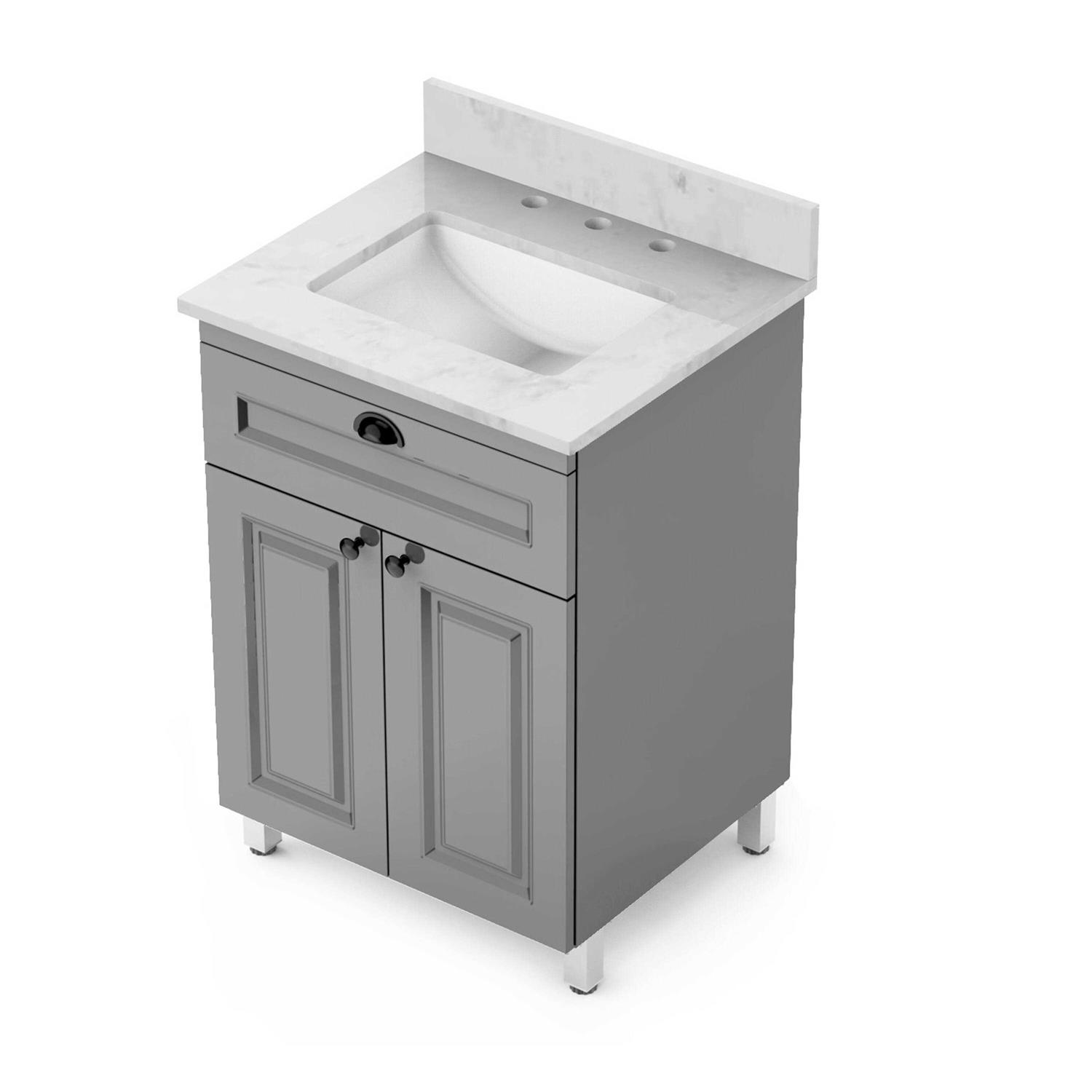 Winette 25 in. W x 22 in. D Engineered Stone Composite Vanity Top in Carrara White with White Rectangular Single Sink Marble | WVTLW25