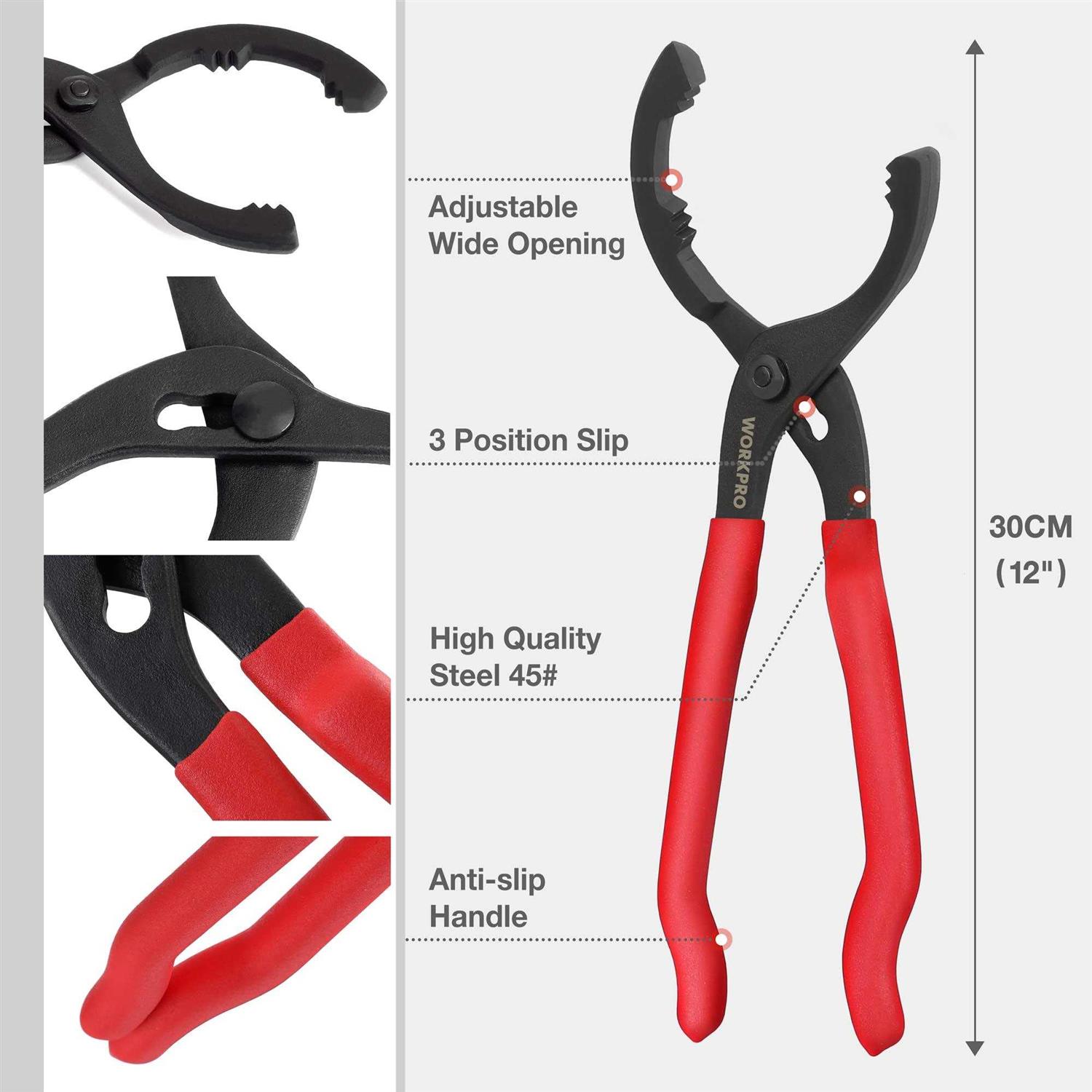 WorkPro 12″ Adjustable Oil Filter Pliers, Oil Filter Wrench Adjustable Oil Filter Removal Tool, Ideal for Engine Filters, Conduit, Fittings, W114083A